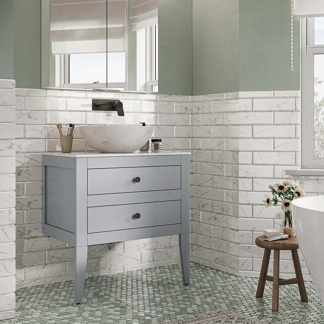 he Crosswater Canvass 700mm two drawer unit with matching decorative legs and Carrara marble effect worktop (when selected). The Canvass vanity unit is available in four finishes, all of which are designed to be visually striking whilst offering high levels of durability with the added benefit of being manufactured from 80% renewable sources.